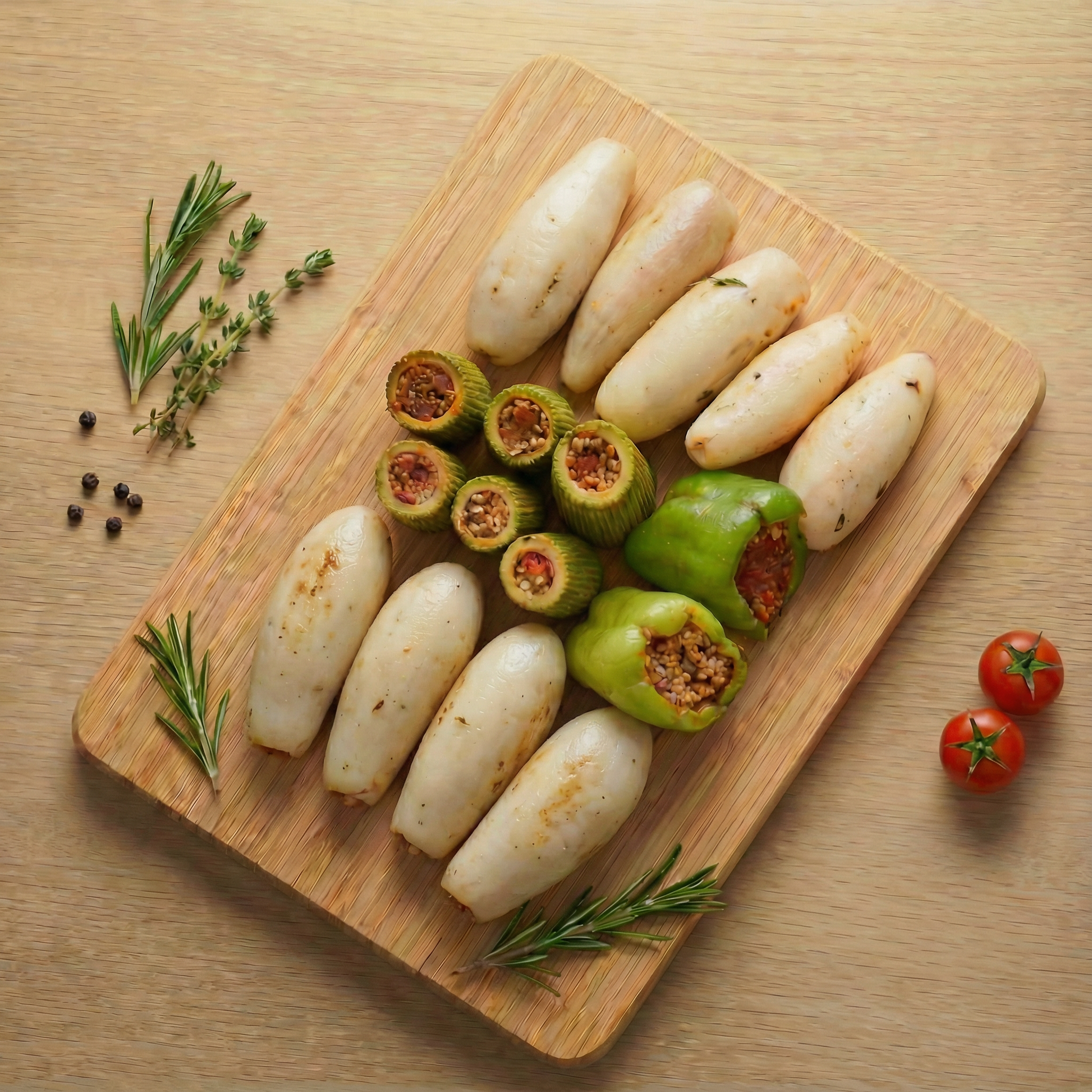 محاشي مكس (بتنجان - كوسه - فلفل)